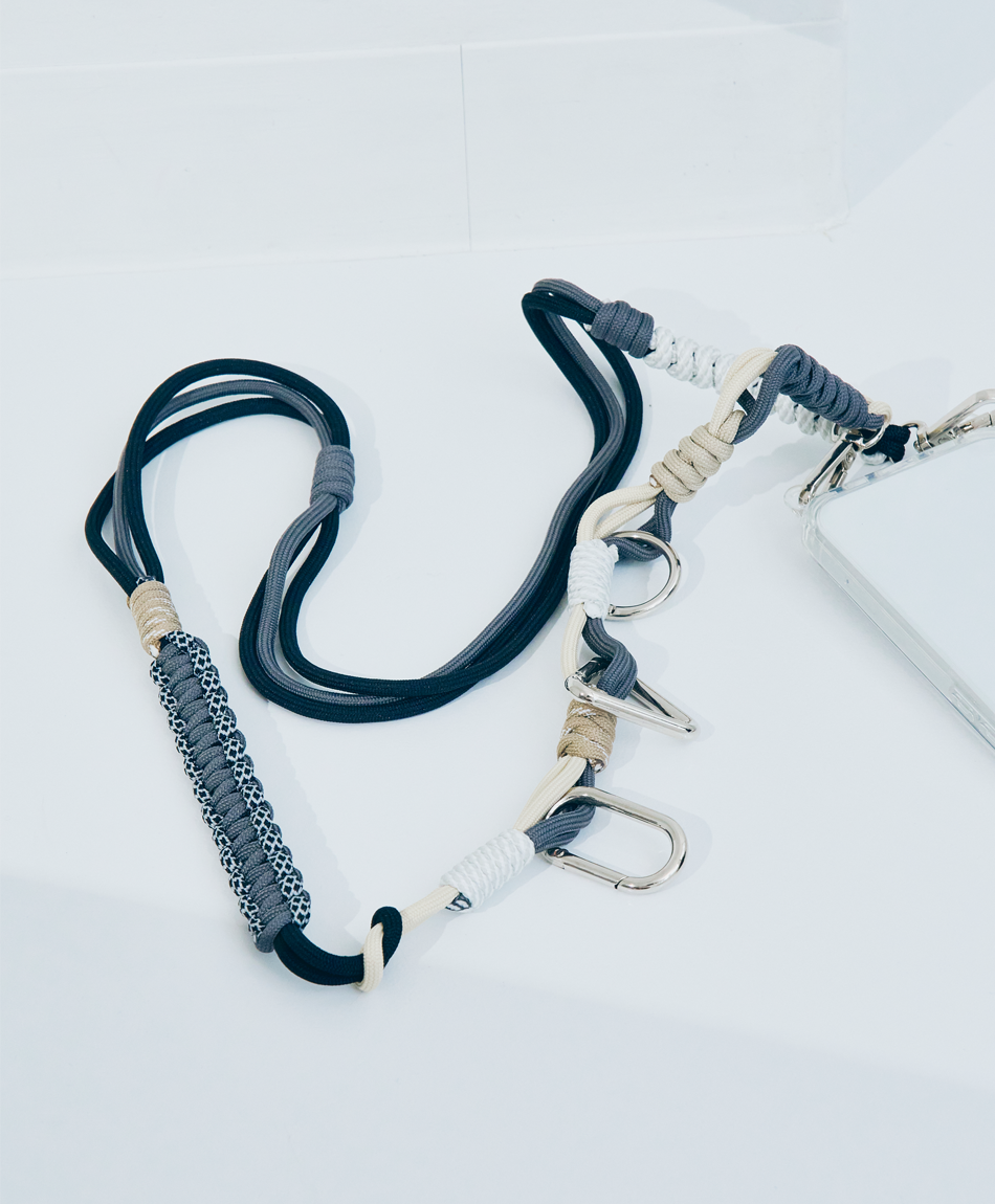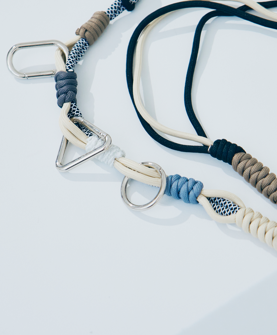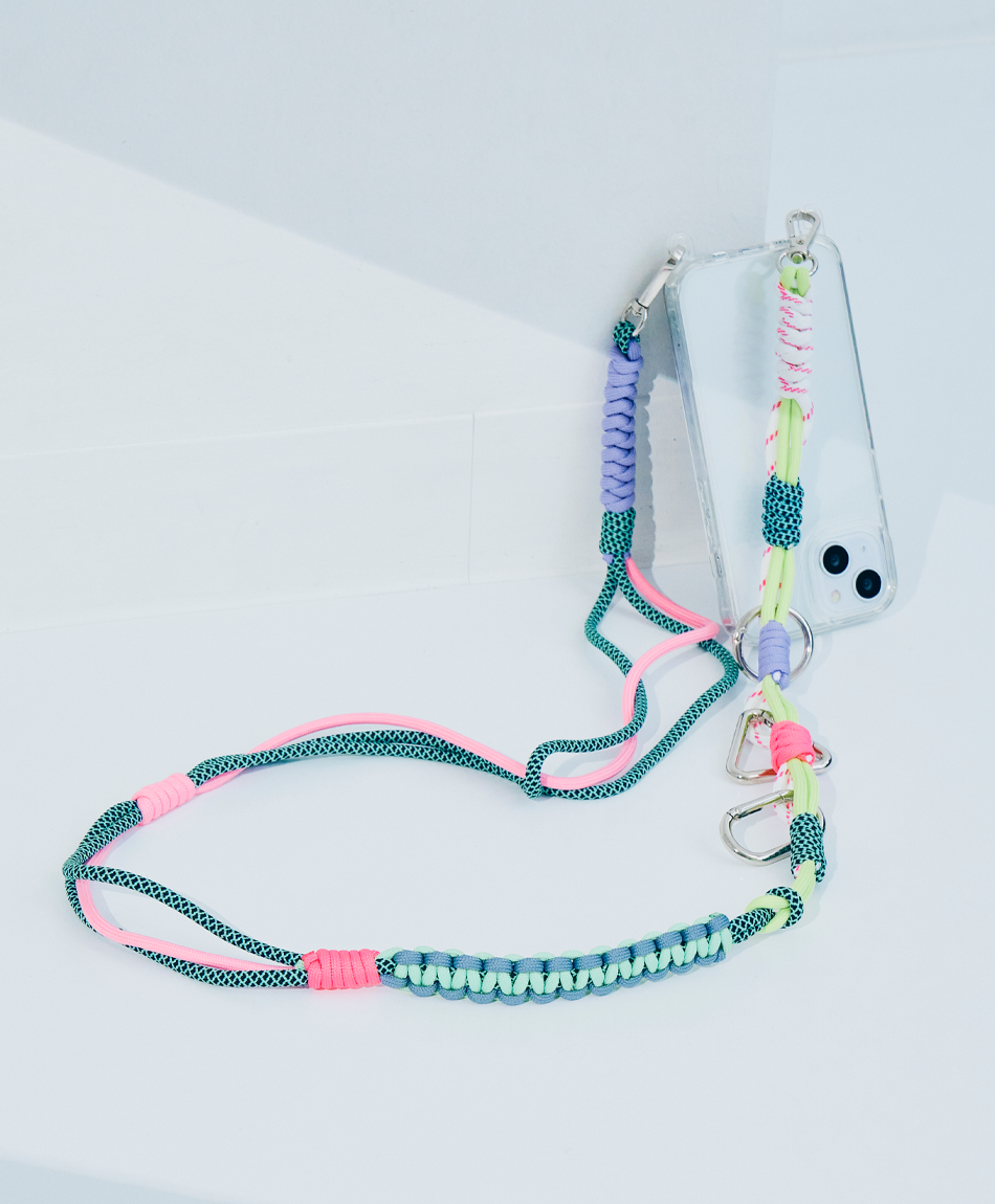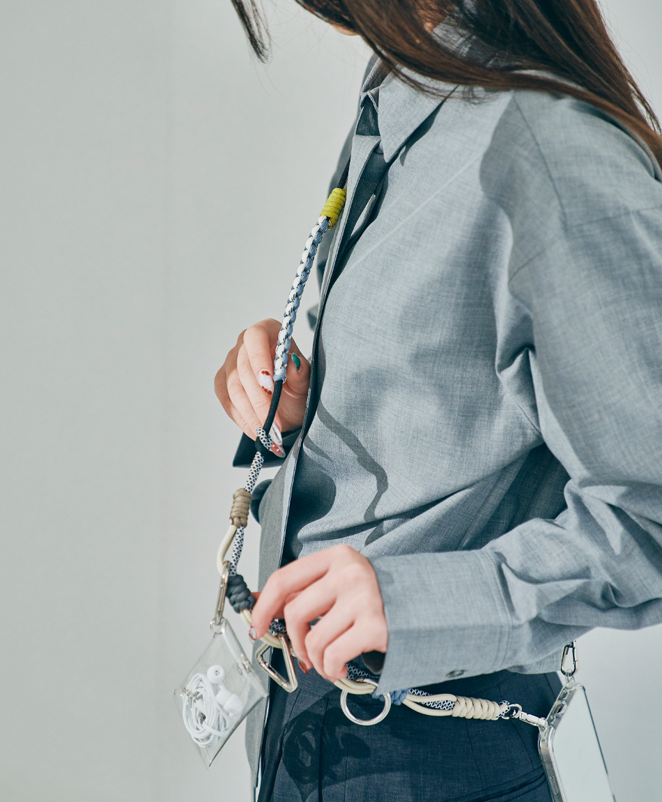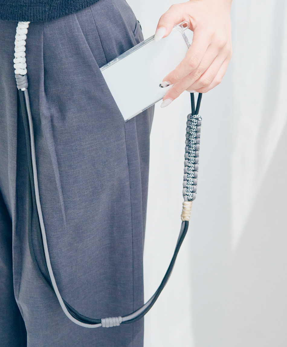 短い方はバッグにつけたり、紐部分は取り外し可能で、長いストラップはネックストラップに。スマホやネームカードを下げて、首からぶら下げて使えます。