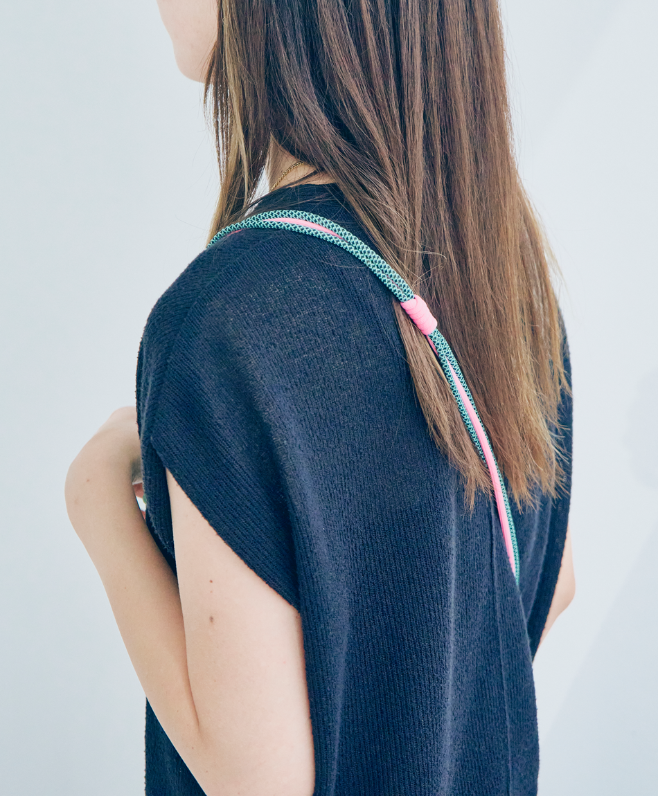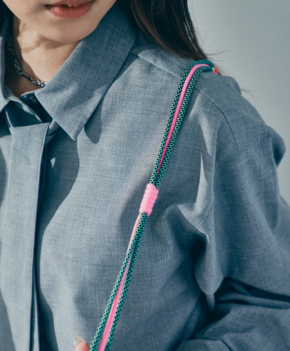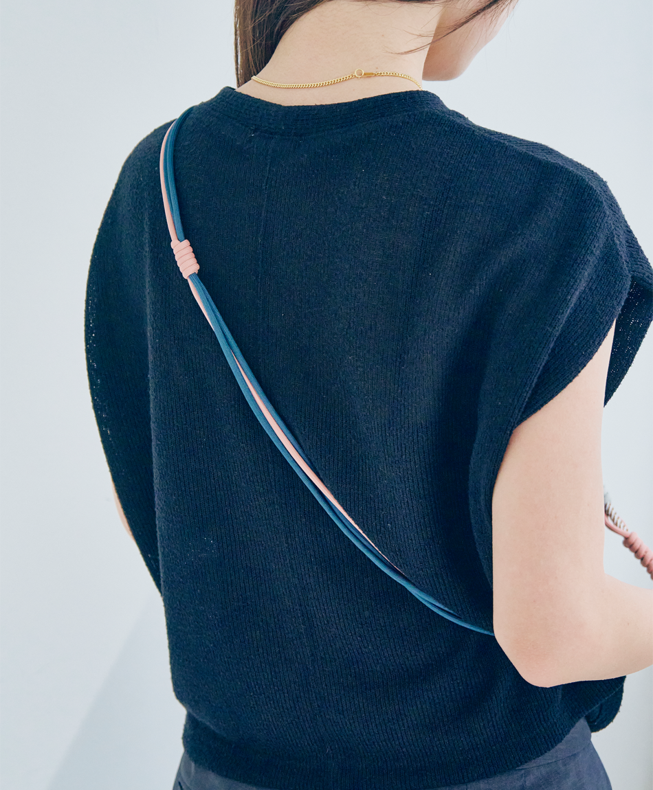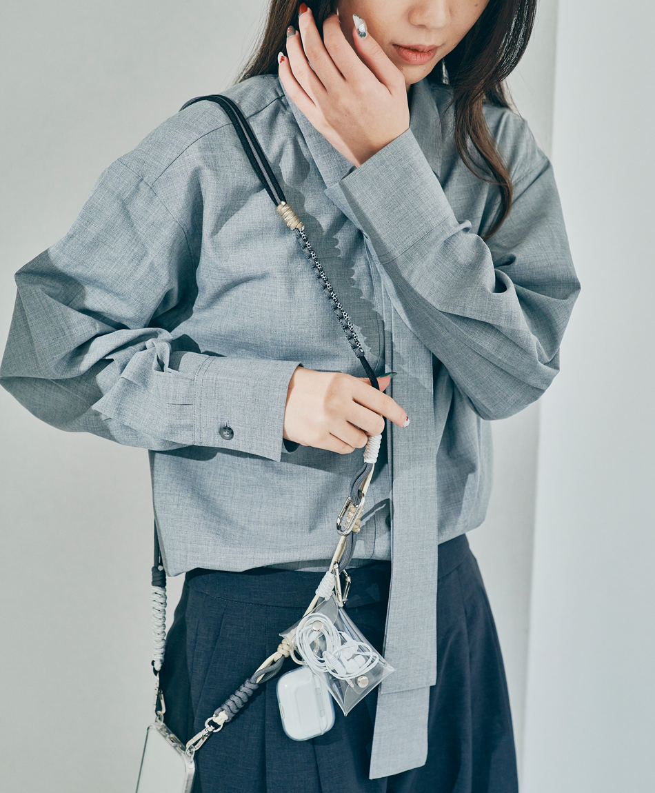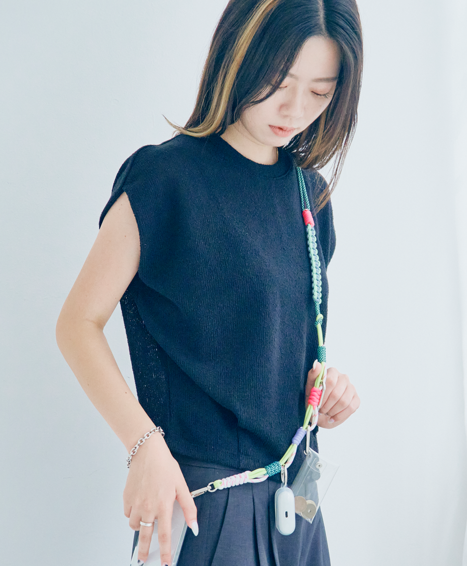短い方はバッグにつけたり、紐部分は取り外し可能で、長いストラップはネックストラップに。スマホやネームカードを下げて、首からぶら下げて使えます。