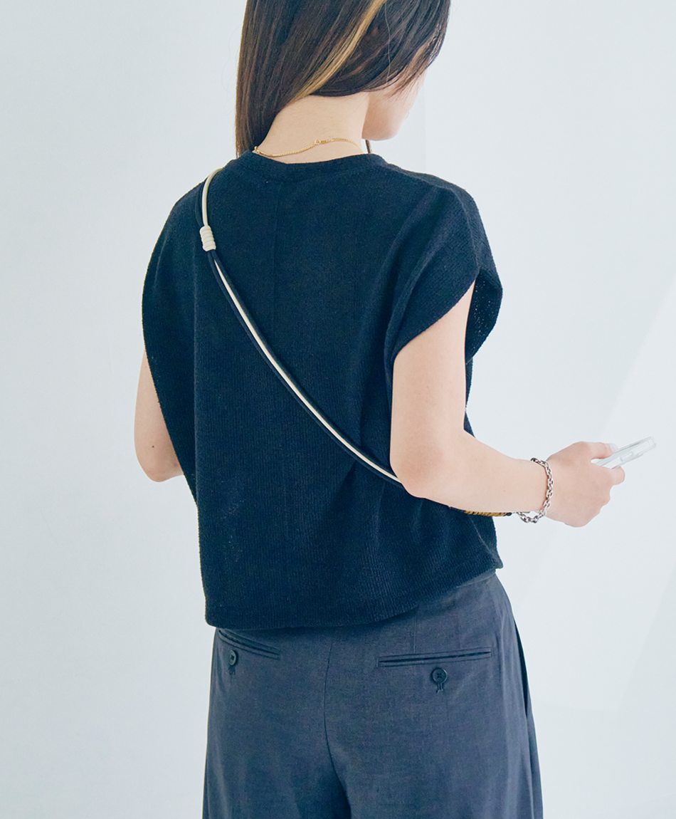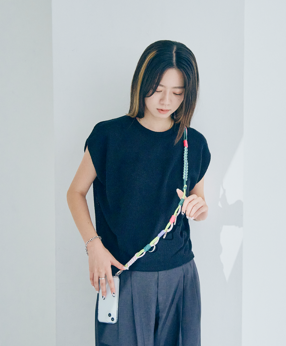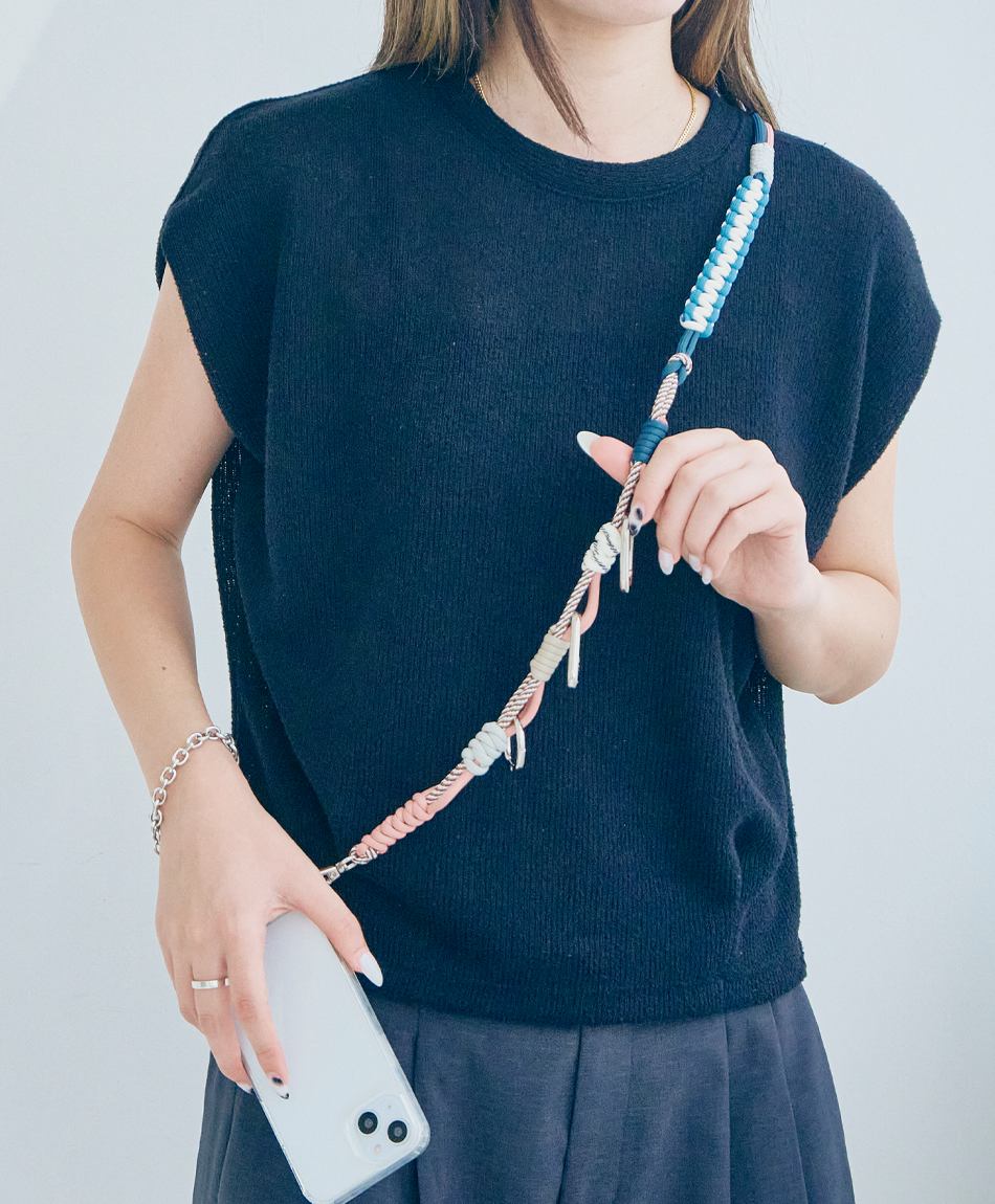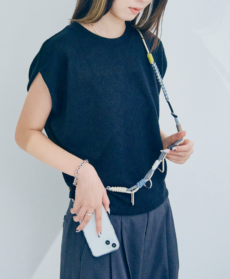 ウエスト部分につけてスマホや財布にウォレットチェーンのように使用したり、長すぎる場合は結んで少し調節もできます。