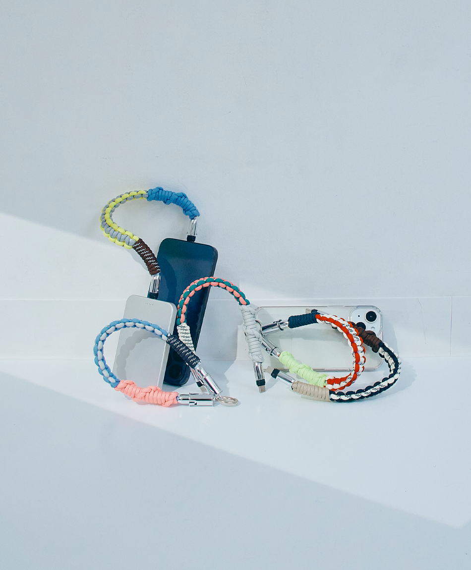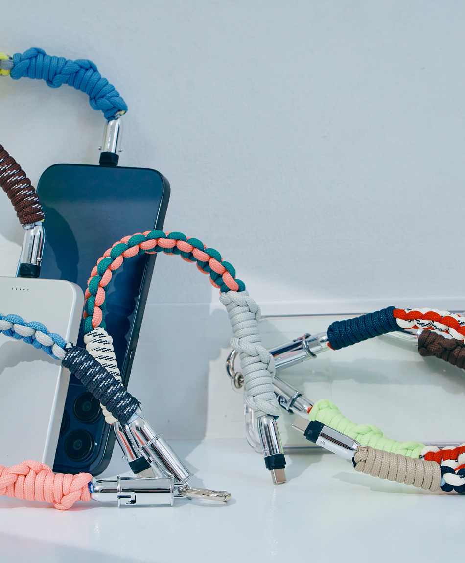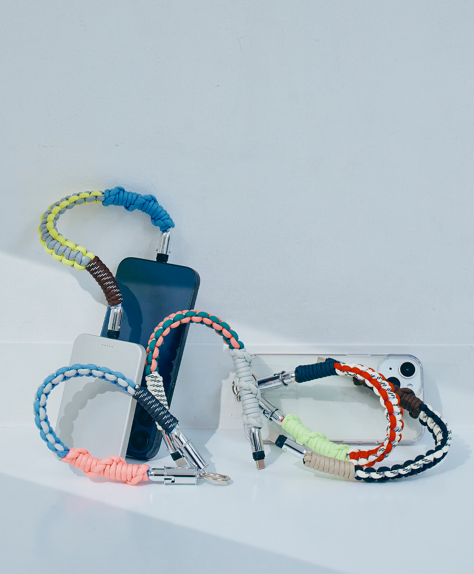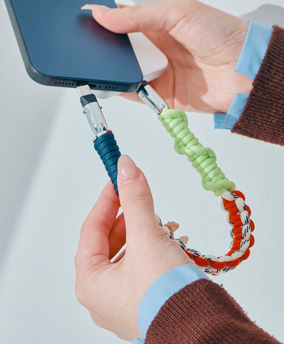 一見すると、ボリューム感のあるトレンドのパラコード編みストラップ。でも実は、先端のパーツを外せば「急速充電対応のケーブル」に早変わり!キャンプやフェスなどのアウトドアシーンはもちろん、モードな街歩きスタイルにも馴染むタフで都会的なデザインです♪「バッテリーが足りない!」と思ったら、手首のストラップを外すだけ。バッグの奥底で絡まったケーブルを探す手間も必要ありません!