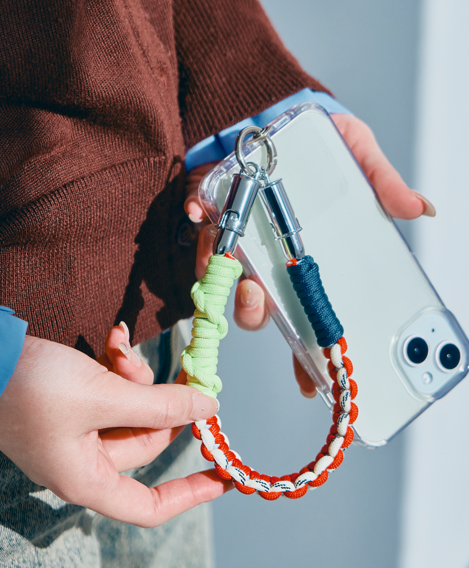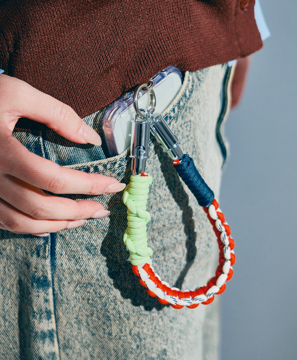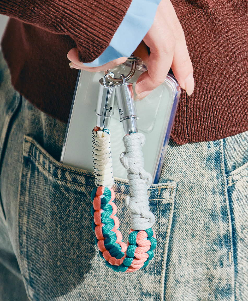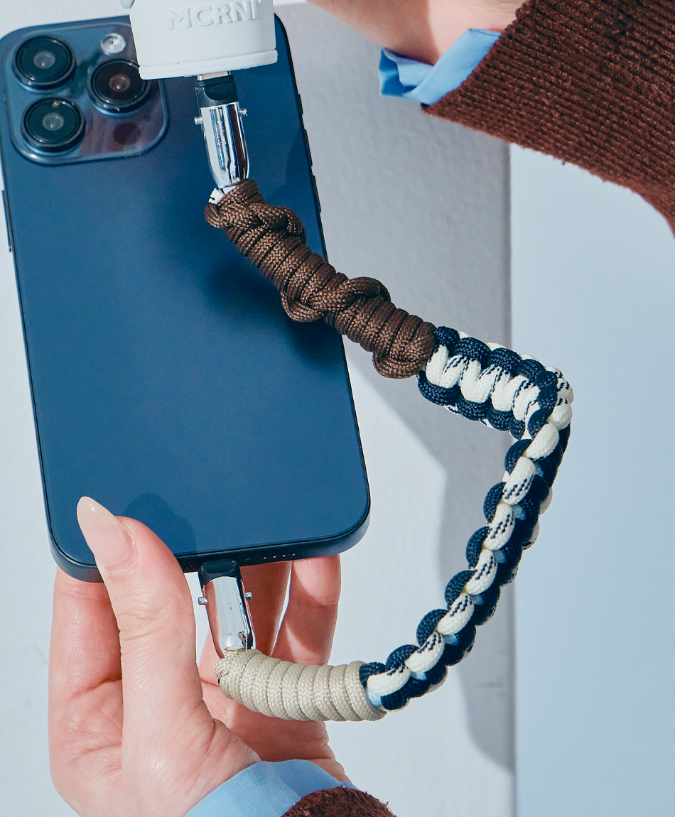 一見すると、ボリューム感のあるトレンドのパラコード編みストラップ。でも実は、先端のパーツを外せば「急速充電対応のケーブル」に早変わり!キャンプやフェスなどのアウトドアシーンはもちろん、モードな街歩きスタイルにも馴染むタフで都会的なデザインです♪「バッテリーが足りない!」と思ったら、手首のストラップを外すだけ。バッグの奥底で絡まったケーブルを探す手間も必要ありません!