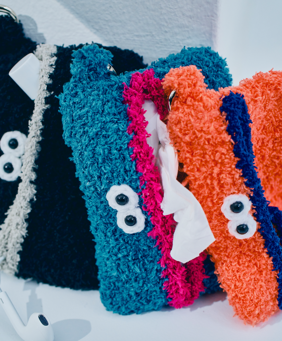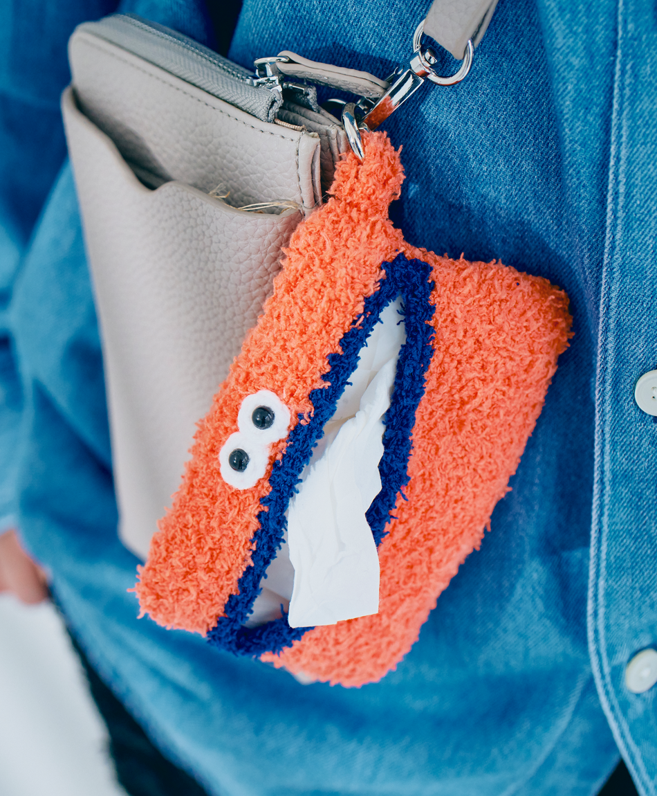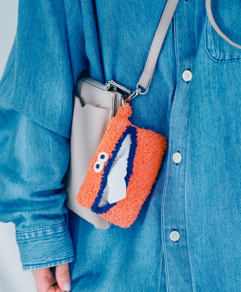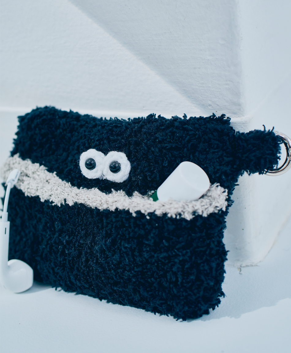 ふわふわの素材と、キョロっとした目がチャームポイント。バッグやベルトループに付けられるカラビナ付きなので、必要な時にサッと取り出せて便利です。バッグの中でバラバラになりがちなリップやイヤホンなどをまとめるのにもオススメ◎個性的なデザインで、毎日の持ち歩きが楽しくなります!