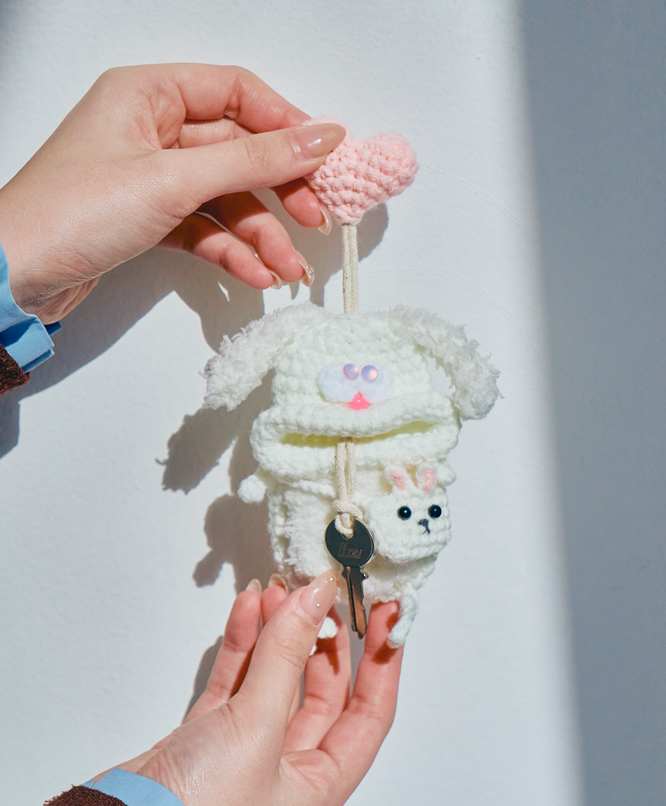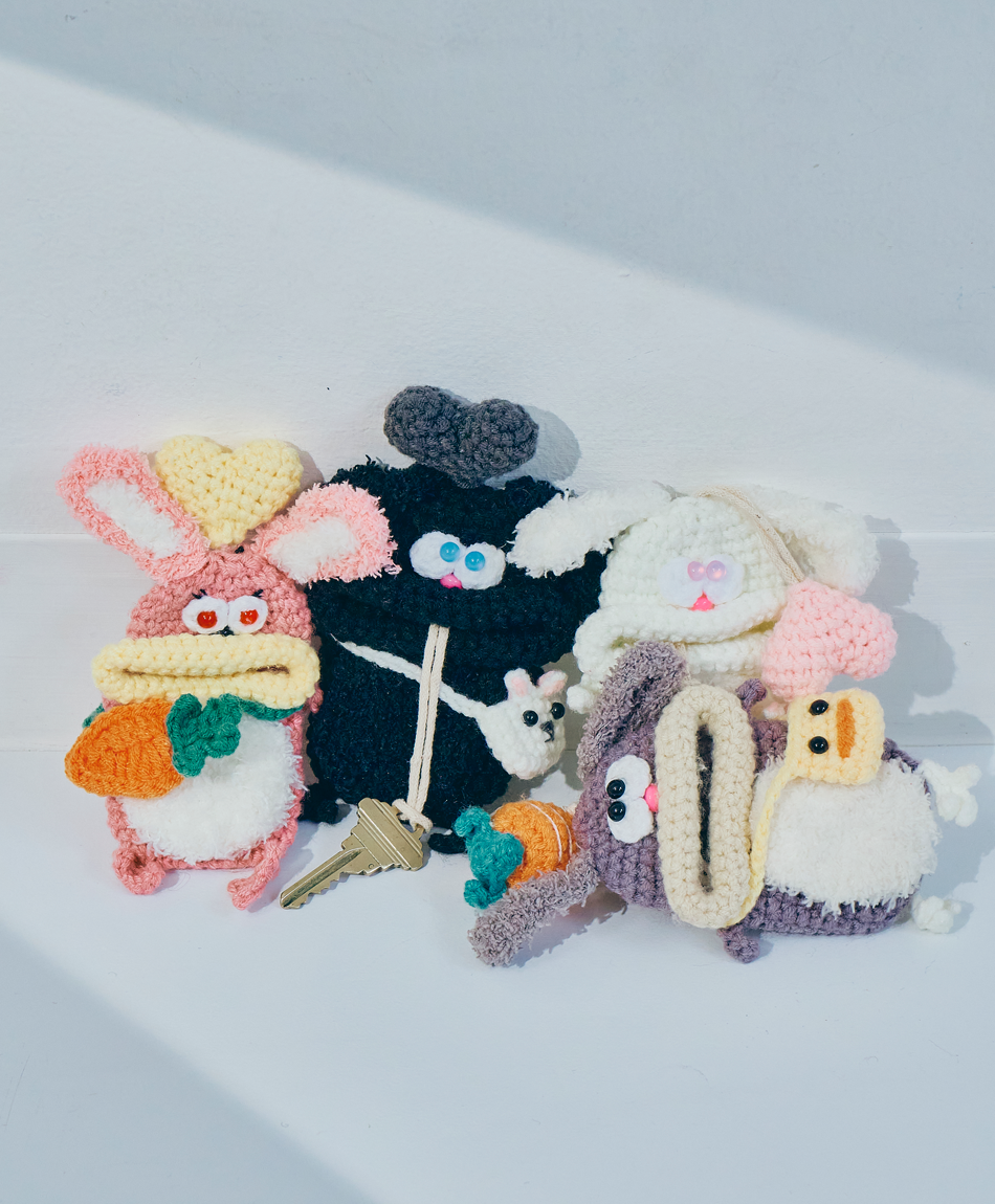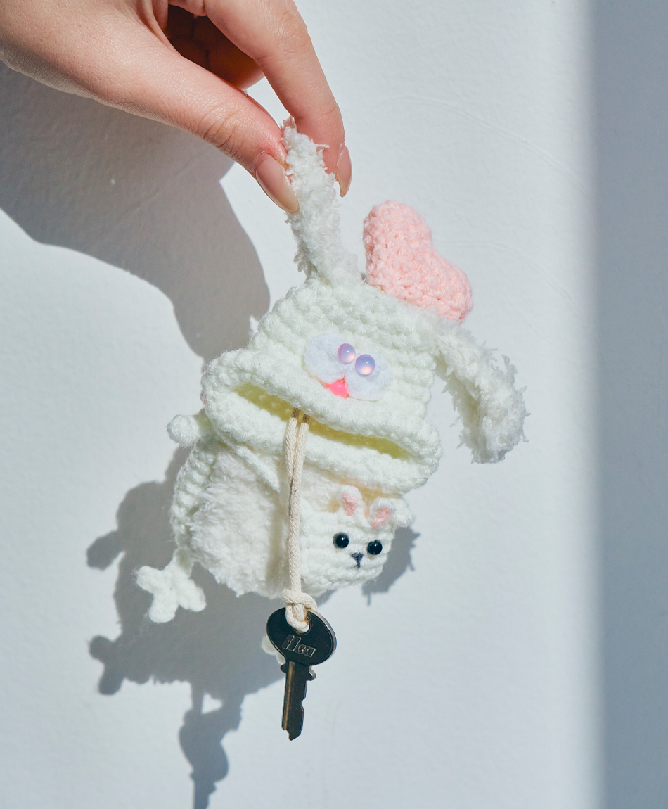 macaroni edgeの大人気シリーズ、毛糸のマスコットファミリーにうさぎのキーケースが新たに登場!
