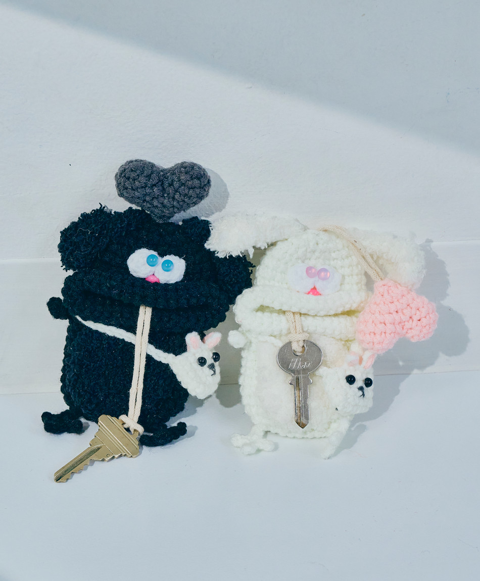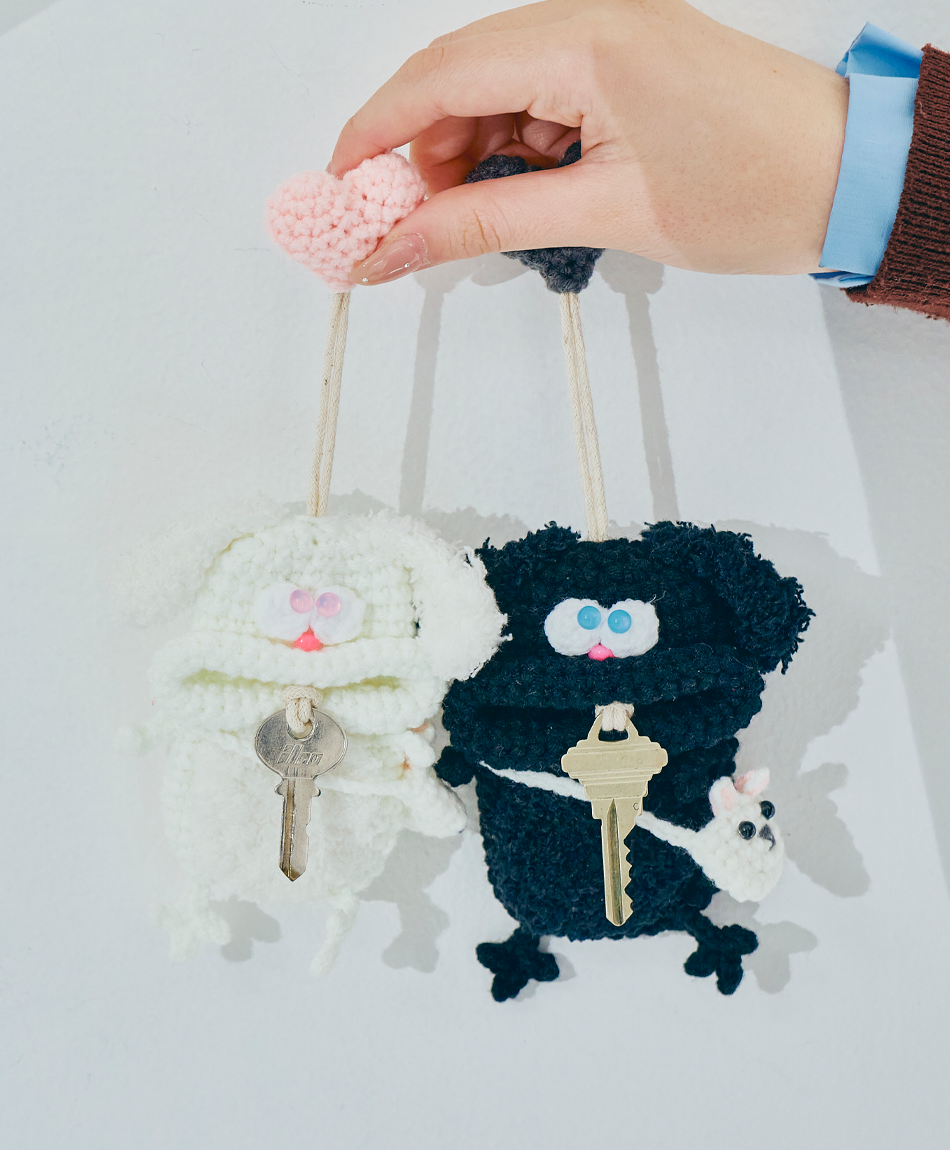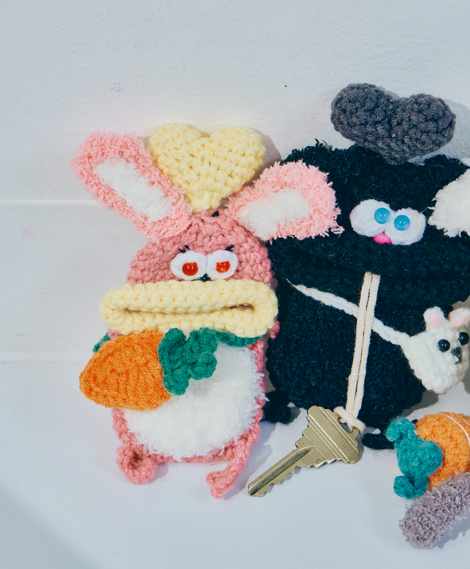 macaroni edgeの大人気シリーズ、毛糸のマスコットファミリーにうさぎのキーケースが新たに登場!