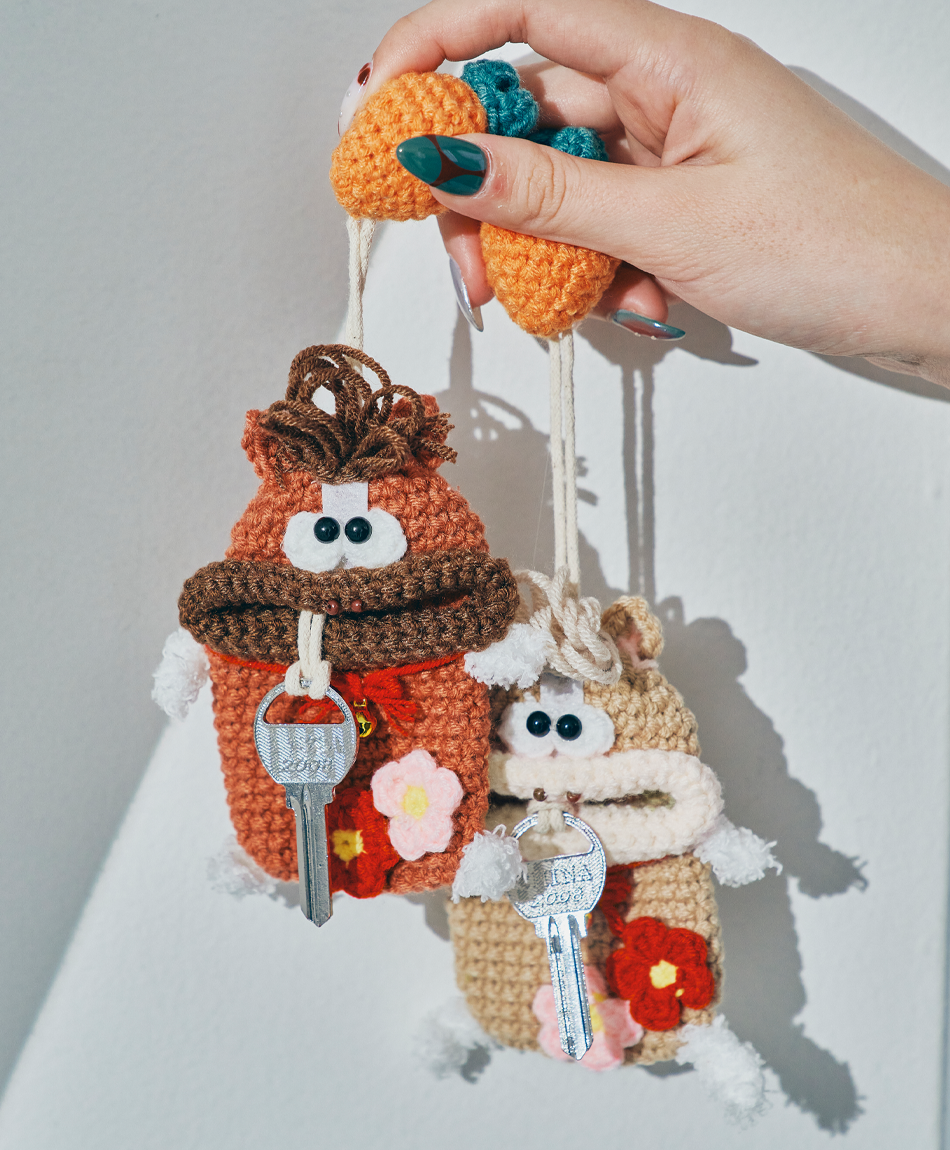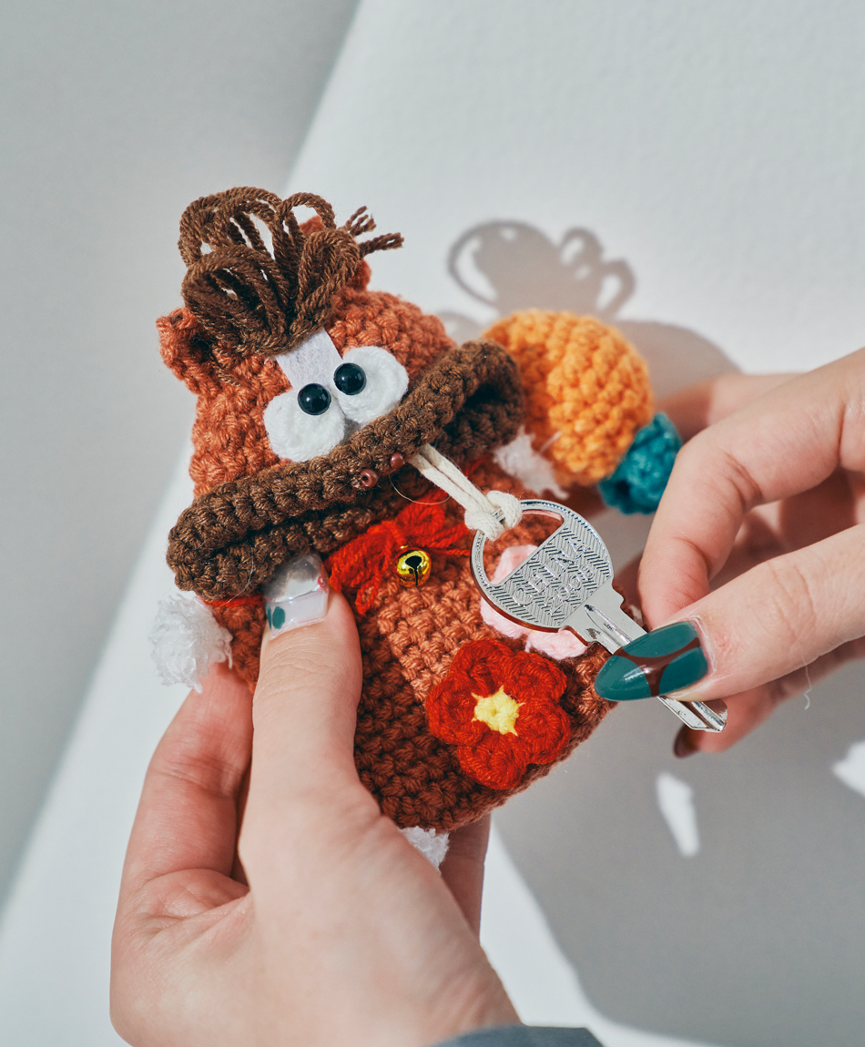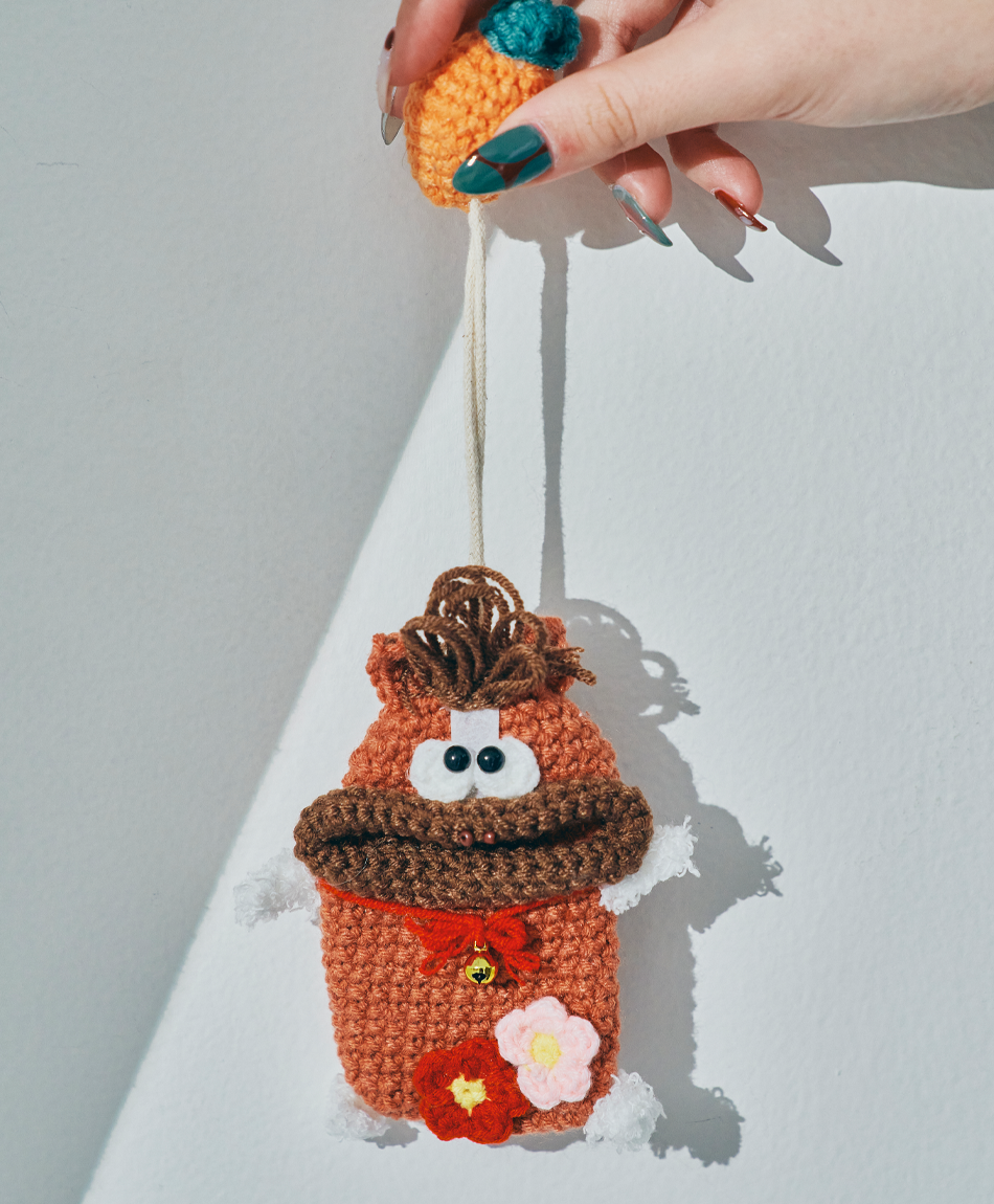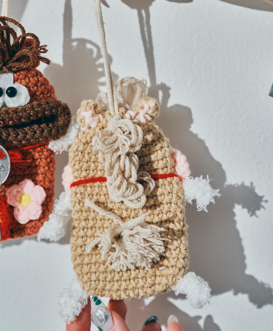 毛糸のマスコットシリーズは手作りのため、一つひとつ表情が異なるユニークさも魅力です。誰ともかぶらないユニークなフォルムで、プレゼントやペアで使えると好評です♪
